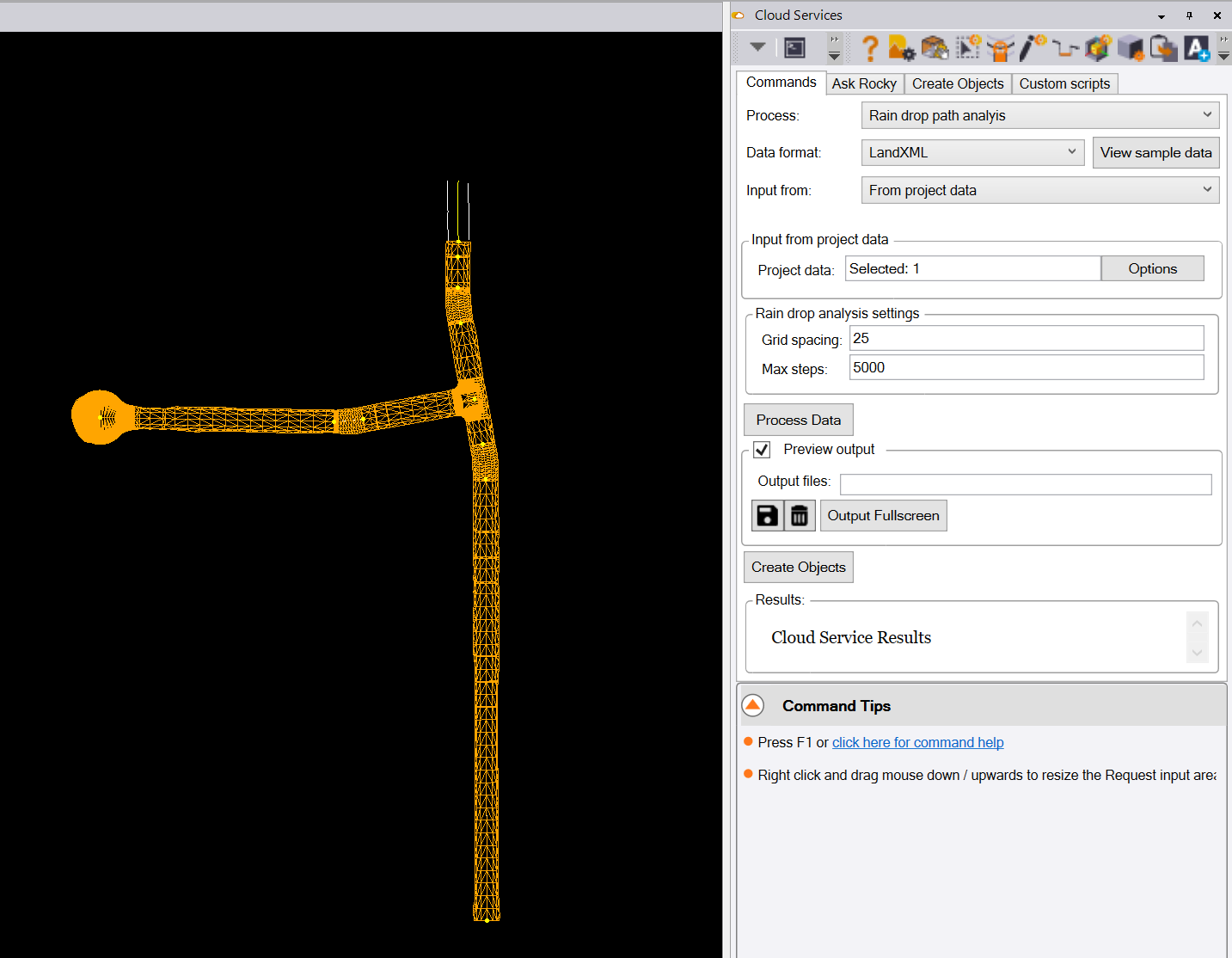 Select the Rain drop path analysis option from the pull down list of options