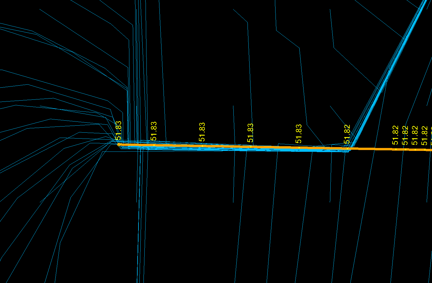 On successful execution, you will see flow path linework for the process that is placed on a layer called FLP - Surface Name - Water Drop Analysis in Layer Group 99L - DRAINAGE ANALYSIS. You will also find a circle placed at the termination point of each downhill flow path.