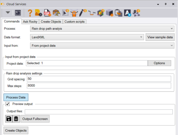 Rain drop analysis settings - Grid spacing