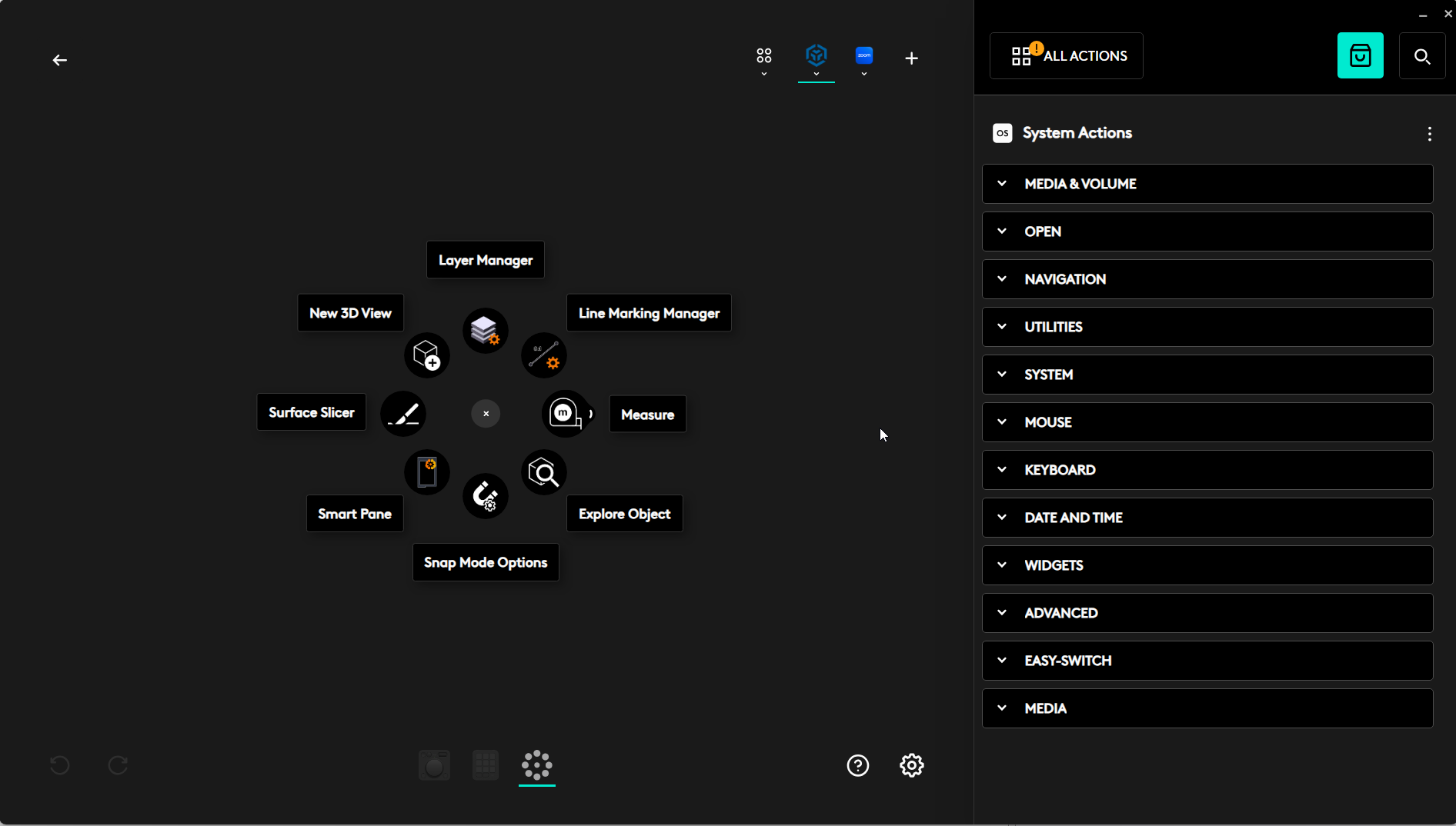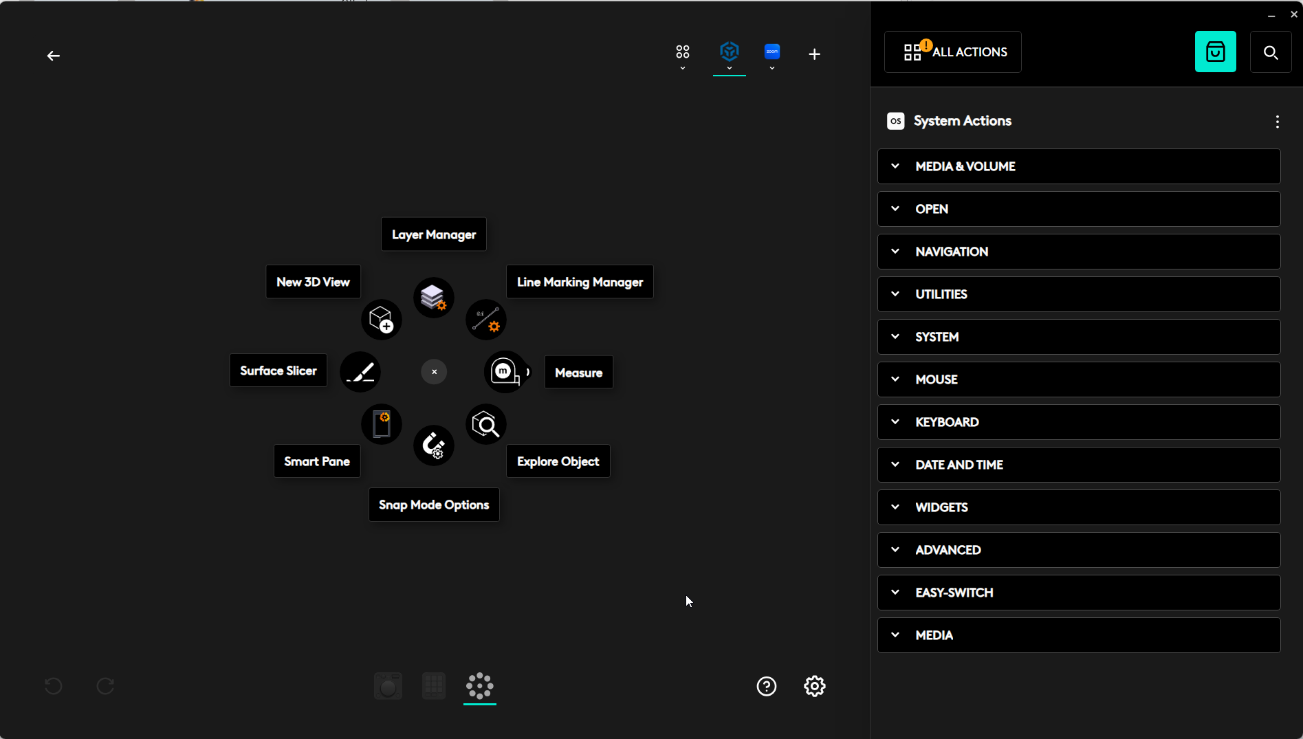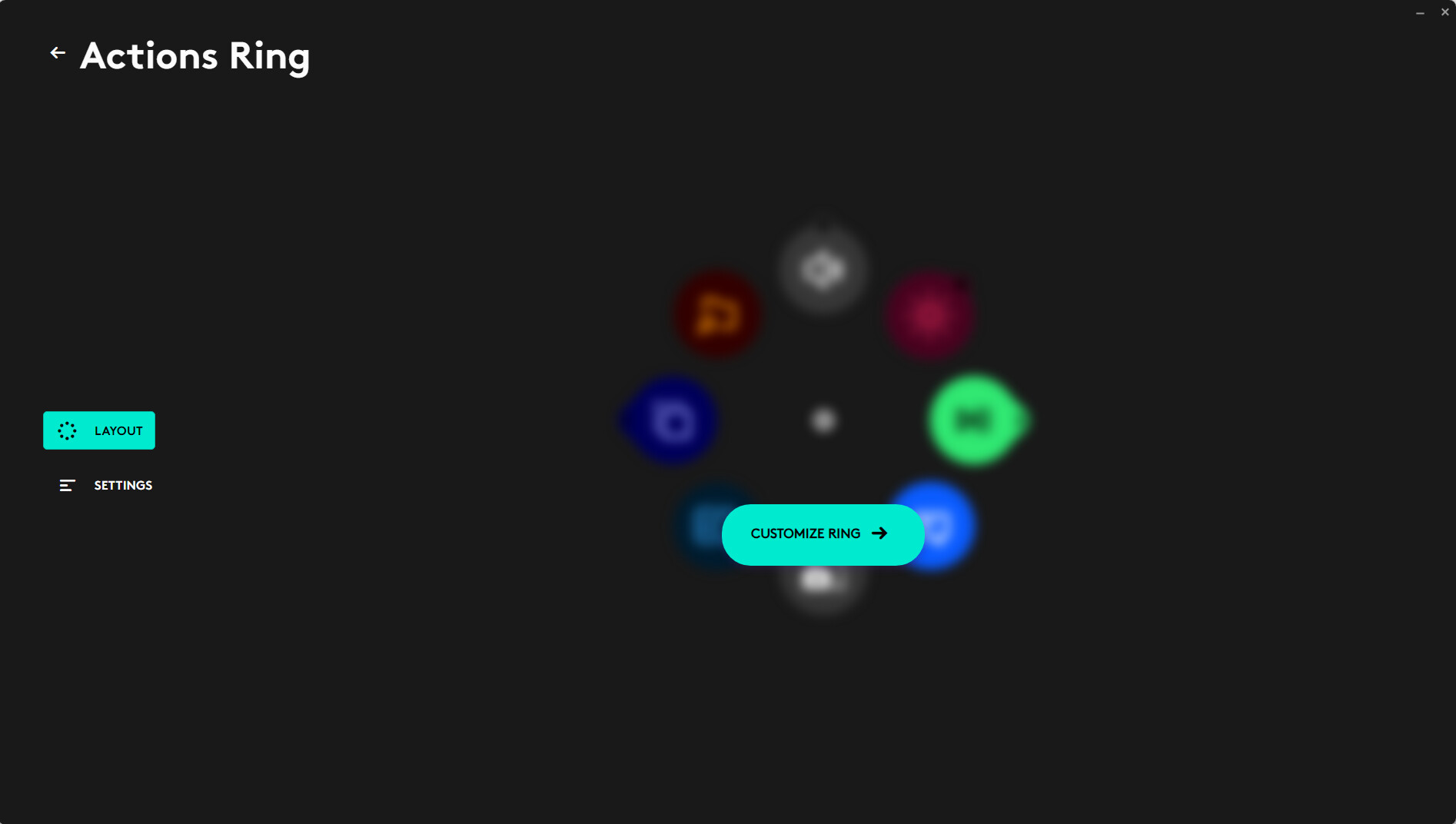 - From the Logi Options home screen, click on the Actions Ring icon in the header bar