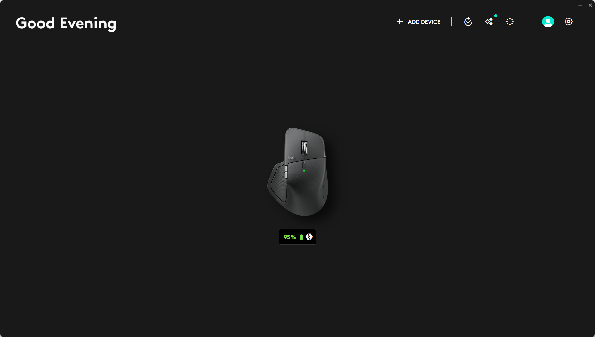 When you open the Logitech Logi Options Software, if you have already paired your Mouse with your computer using Bluetooth, or if you have plugged in the USB C Receiver, the Mouse will appear on the Logi Options+ landing Page. If the Mouse does not show up, click Add Device and follow the instructions to connect the MX Master 4 Mouse to your computer.