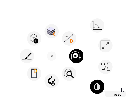 The Mouse also has 3 additional Programmable Buttons (2) just above the thumb pad, making them extremely easy to access. Button 1 at the front we program to use our TBC Action Ring - this contains all of those tools like Snaps, Measure, Inverse, Explore Object etc that you need along the way when you are running other commands. This is a great supplement to the RPS Navigate radial menu, and enables the RPS Navigate to focus on Major Workflows, and the Action Ring to focus on sidebar tools that you need while working.