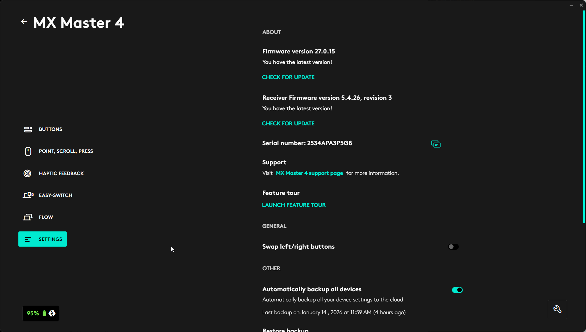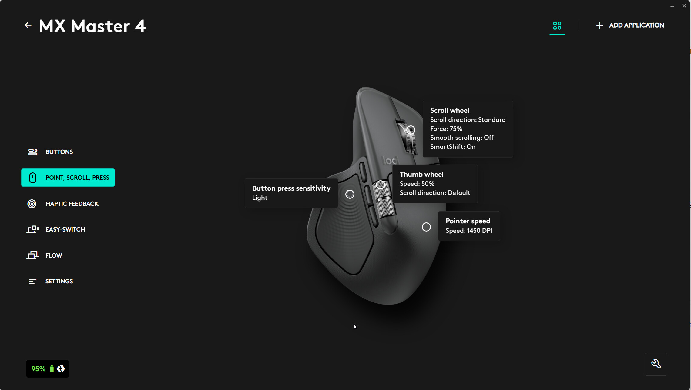 From the Home Screen, click on the picture of the MX4 Mouse