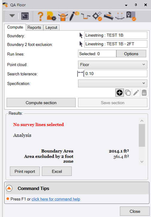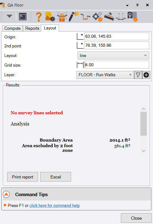 Having created the run line layout, you are now ready to carry out the computation and analysis of Floor Flatness and Levelness.