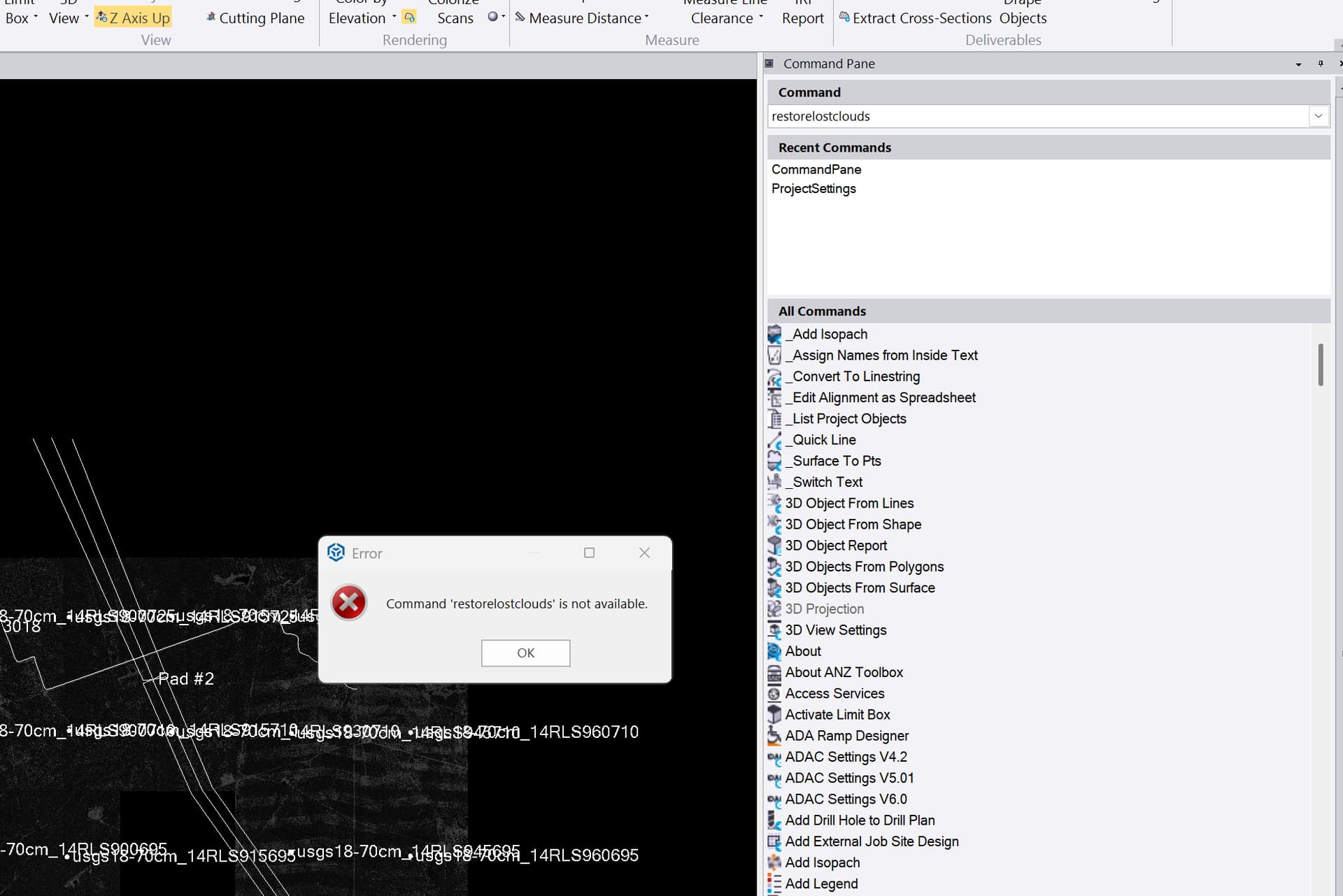 I had TBC project in which I had Scans from SX12 processed. After installing the RPS I am unable to see my scans while the rest of the information is in tact when I look through the Project Explorer. Only my Cad work is visible. I tried to “Toggle Visibility” of various objects to no avail. I quit the project and started a new project and tried to import the scan jobs from Connected Workspace. The files wee not imported !!! Any connection between the RPS installation and this. Should I uninstall RPS and try?