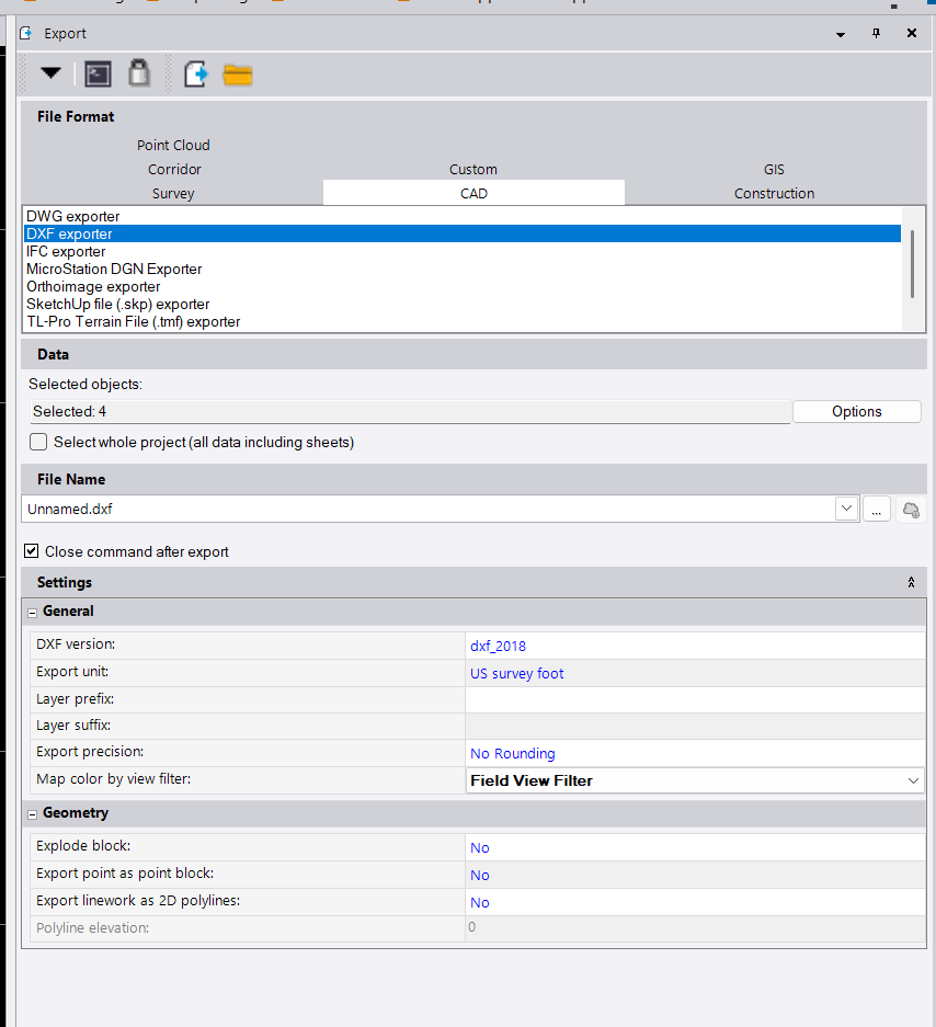 I dont know whether field systems that can use the VCE / VCL files can get this type of flow through also - maybe but my guess maybe not as I dont know if they are using View Filters in the field that you defined in the office. I did just test this, however the lines in the DXF Fikle have their colors set to By Layer rather than the overtride color so it would seem that TBC has broken thios work flow. This workflow is not exposed in the Field Data outpiut woirkflows as far as I am aware either.